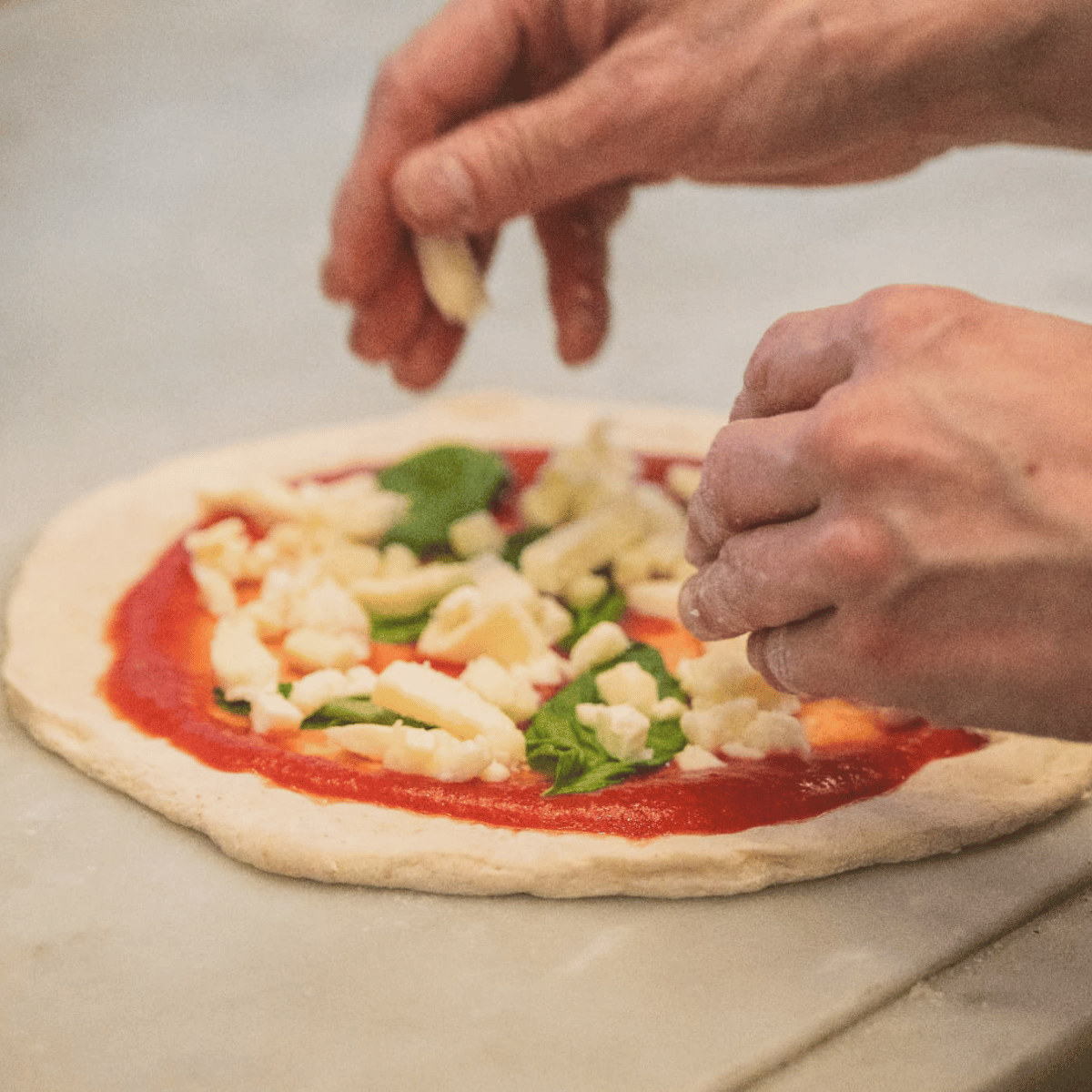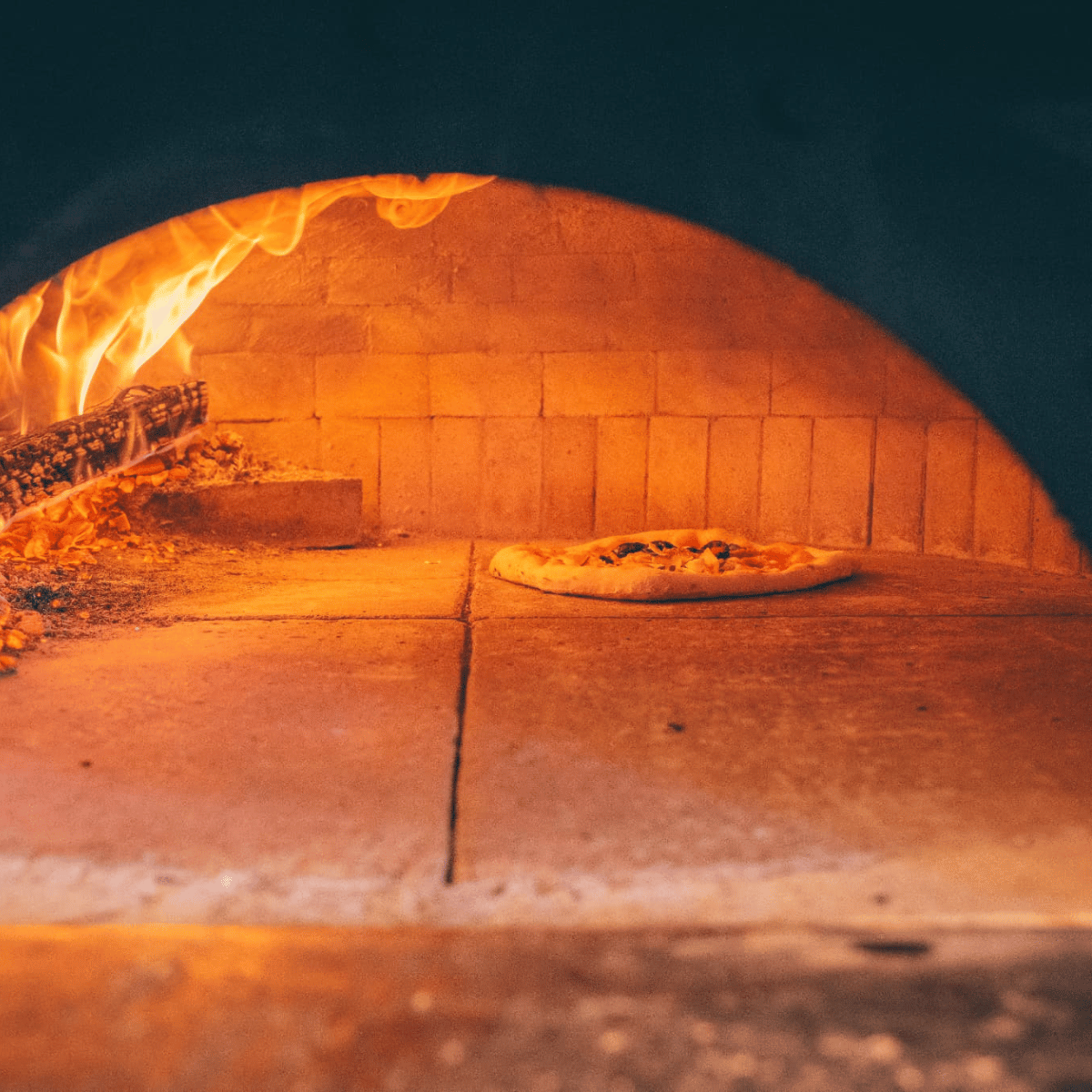 庫内温度が450度以上の高温かつ短時間で焼き上げることで、生地内に適度な水分を残す事ができ、外はカリッとしながらも内側はモチモチの美味しいピッツァが出来上がります!!